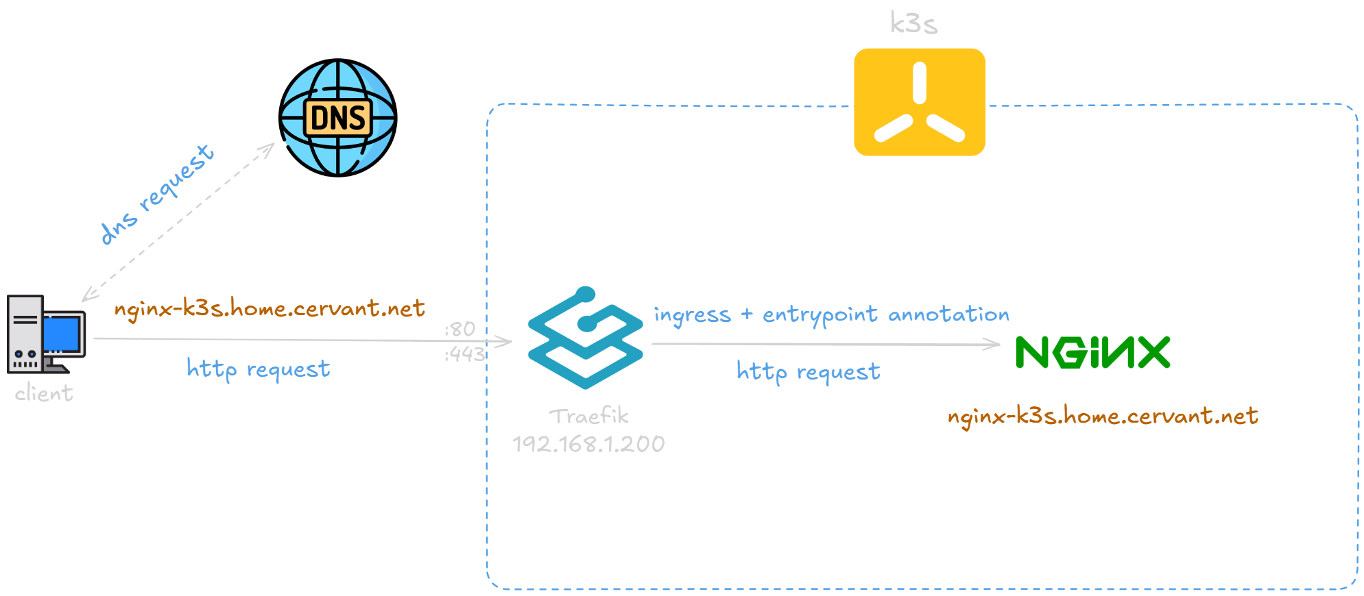 He dispuesto el DNS nginx-k3s.home.cervant.net que apunta a la dirección del LoadBalancer de Traefik 192.168.1.200.