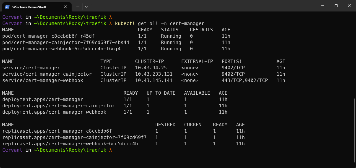 Después de unos segundos veremos que se han creado los siguientes recursos en el namespace cert-manager.